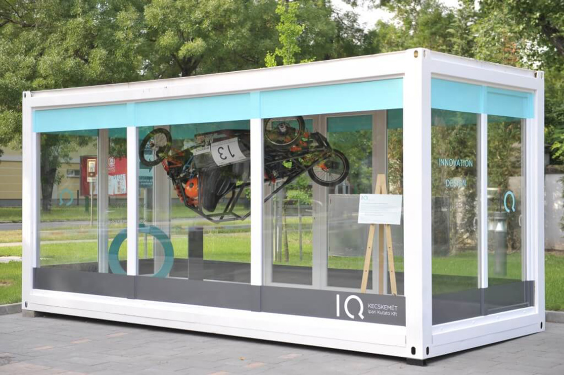 Az IQ Ipari Innovációs Központ, ahol az ötlettől a megvalósításig lehet akár hasonló projekteket készíteni. Ez az autó egy olyan különleges prototípus, amely sűrített levegővel működik, és a Kecskeméti Főiskola GAMF karának diákjai készítették. A készítők: Medve Viktor, Götz Gábor, Ivánovics Gergely, Csáki Péter, Molnár Attila.